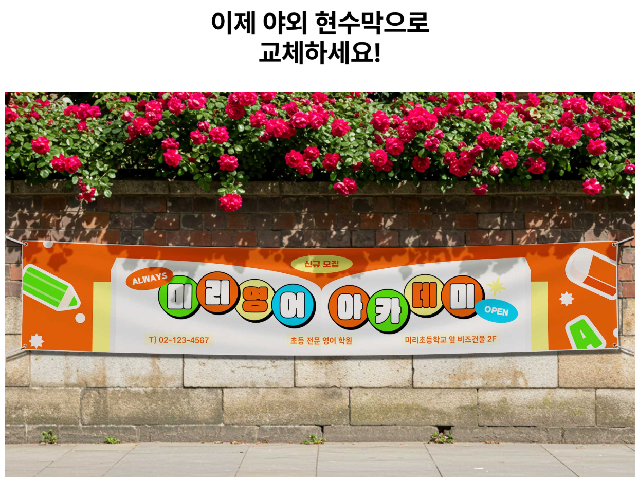 시간이 흘러도 선명하게, 튼튼한 UV원단 🔗더 오래 가는 현수막!