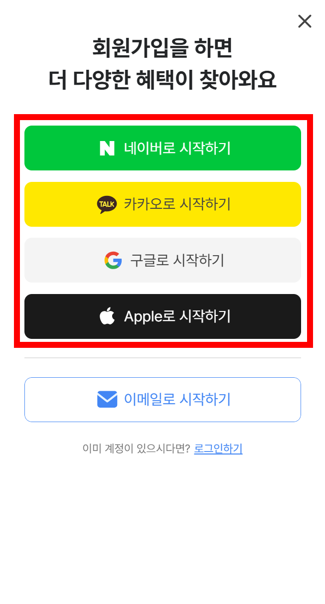 구글 / 카카오톡 / 네이버 / 애플 소셜연동 가입 |