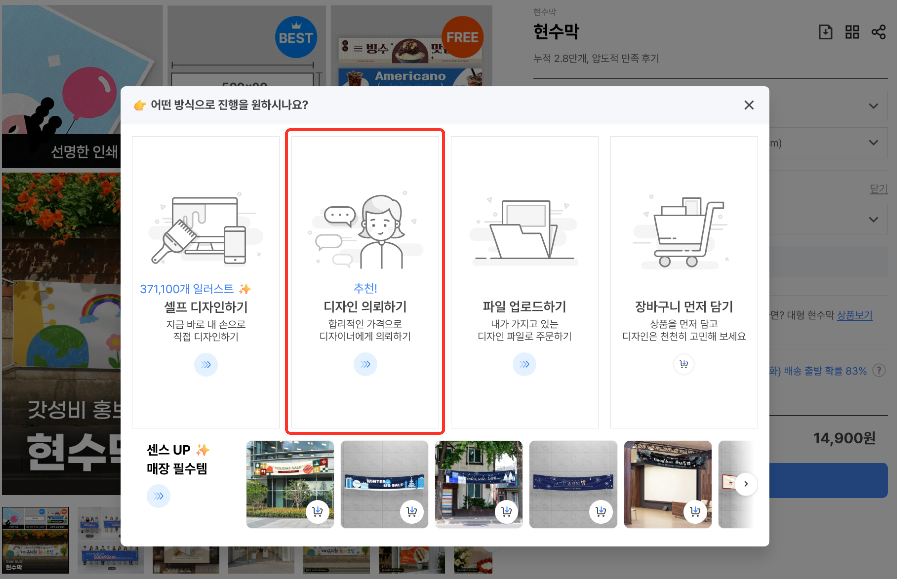 | 👉 진행 방식 선택에서 '디자인 의뢰하기'를 선택해 주세요. |