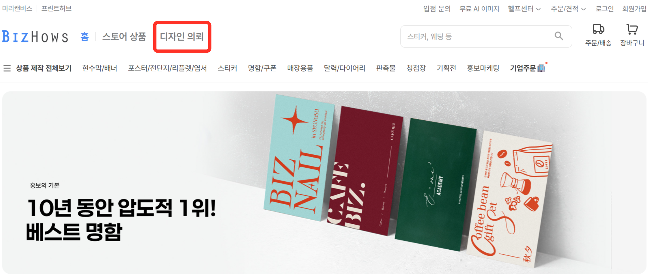 | 👉 비즈하우스 왼쪽 상단 [디자인 의뢰]로 접속해 주세요. |