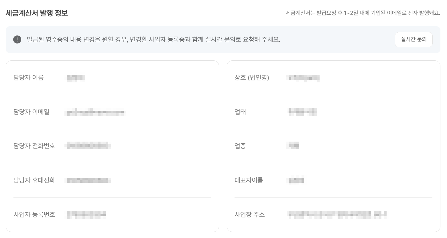 | 6 | 익월 10일 이후에는 수정 세금계산서 발급이 불가하오니, 기재된 내용이 정확한지 꼭 확인해주세요. |